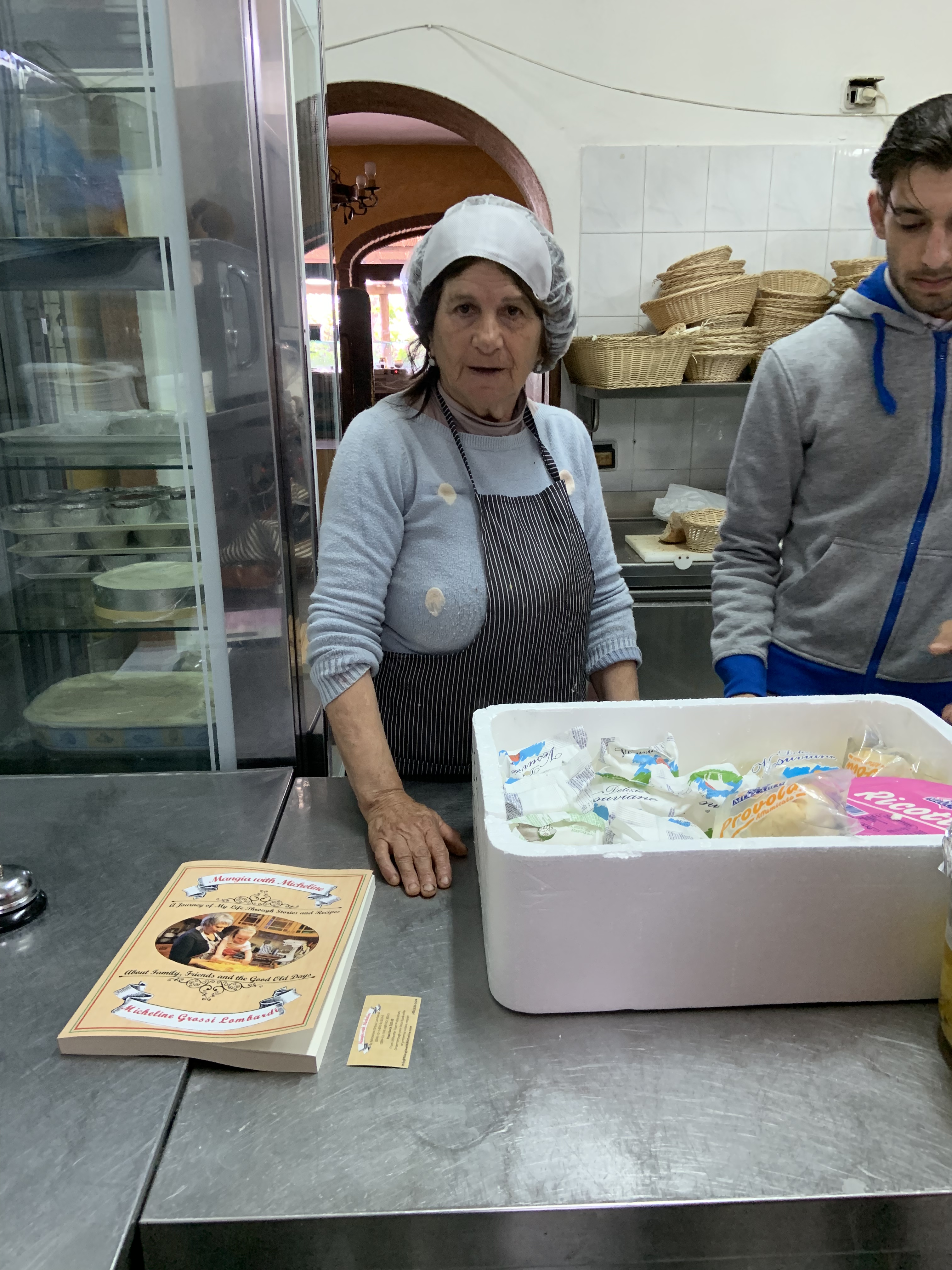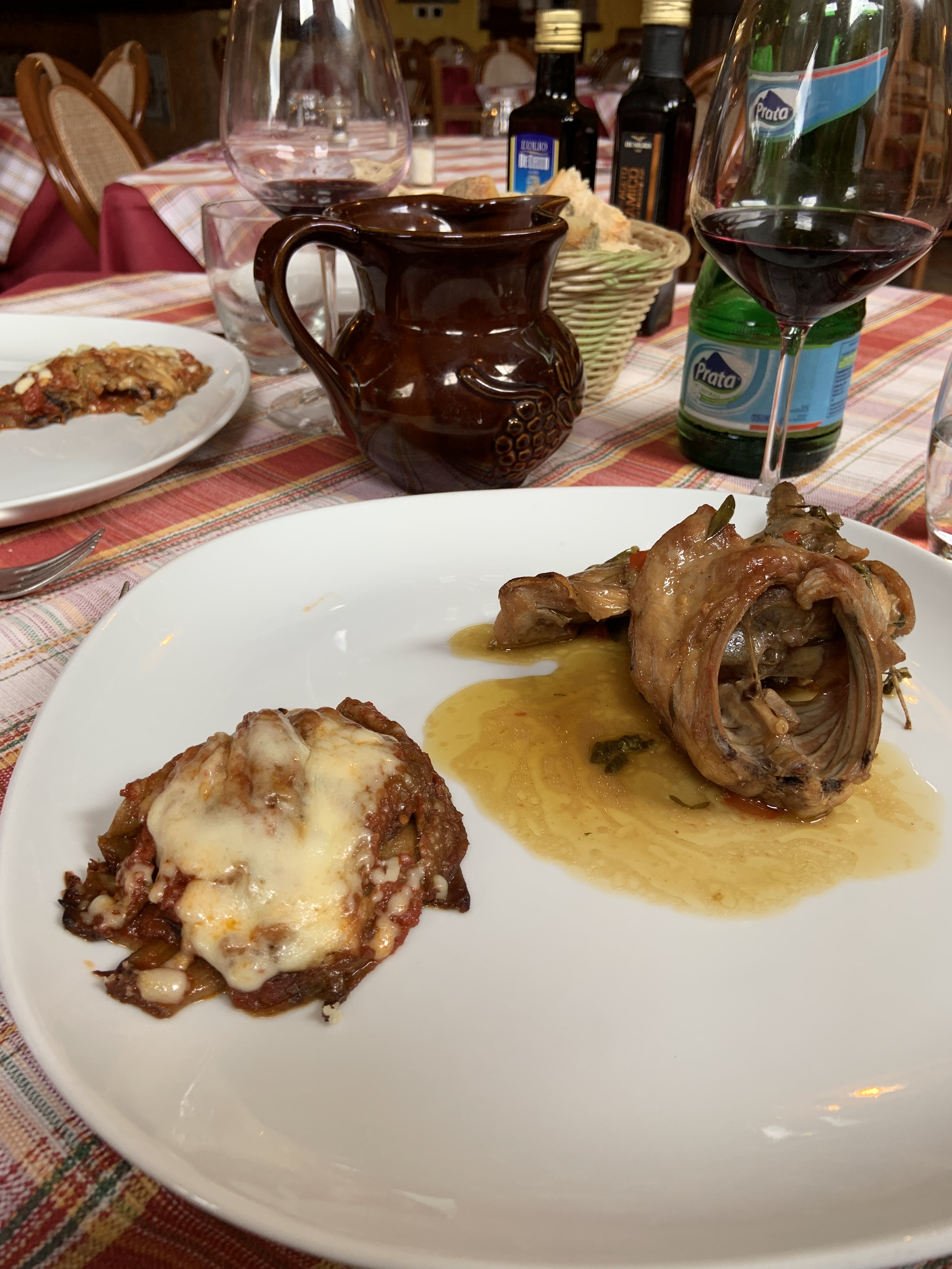 The owner and chef Senora Colella spoke few words of English, however her son Giuseppe acted as interpreter. While waiting for Giuseppe, I gave Senora Colella my cookbook and with my limited Italian and her limited English explained that it was a gift. Of course, we also had the photo album to share. I’m not sure how the lesson would have gone without the gift, but suddenly we were no longer visitors taking a lesson, but more like family. Giuseppe even called his wife to come with his sons to meet us. The lesson was fast and furious, as we made, Croccheranno di patate Fiori di zucca ripieni, Tagliolini al limone and patate gnocchi. In addition, I was able to watch her make a traditional rabbit dish, different pasta dish, and start to prepare octopus. Lunch consisted of tasting all the dishes that were prepared as well as drinking wine and topping it all off with limoncello. All the dishes were prepared with fresh picked vegetables and lemons from their own trees.