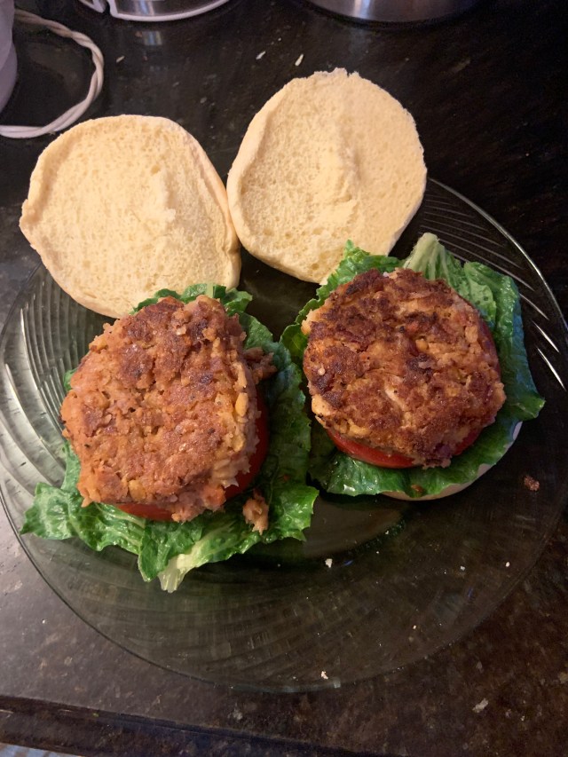 There have been some interesting recipes that will soon appear on my table. One such recipe I tried is a vegan burger. I really have limited experience making vegan food, vegetarian dishes are less challenging as many Italian recipes are naturally meatless. I have to say these “burgers” did come out tasty. I used different colored carrots, just because I like the way it looks. I also used a Vidalia onion, but red or yellow onion would work as well. I used a spicy brown mustard, although it showed yellow mustard. I made sandwiches with lettuce and tomato for my husband, but I had mine with a drizzle of balsamic glaze. Here is my version of an Italian vegan burger.