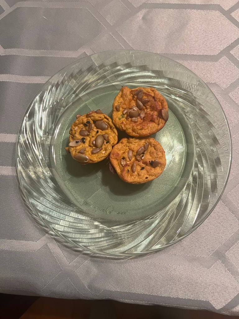 4. Fill a greased mini muffin pan almost to the top with the mixture. Sprinkle each bite with mixed seeds.